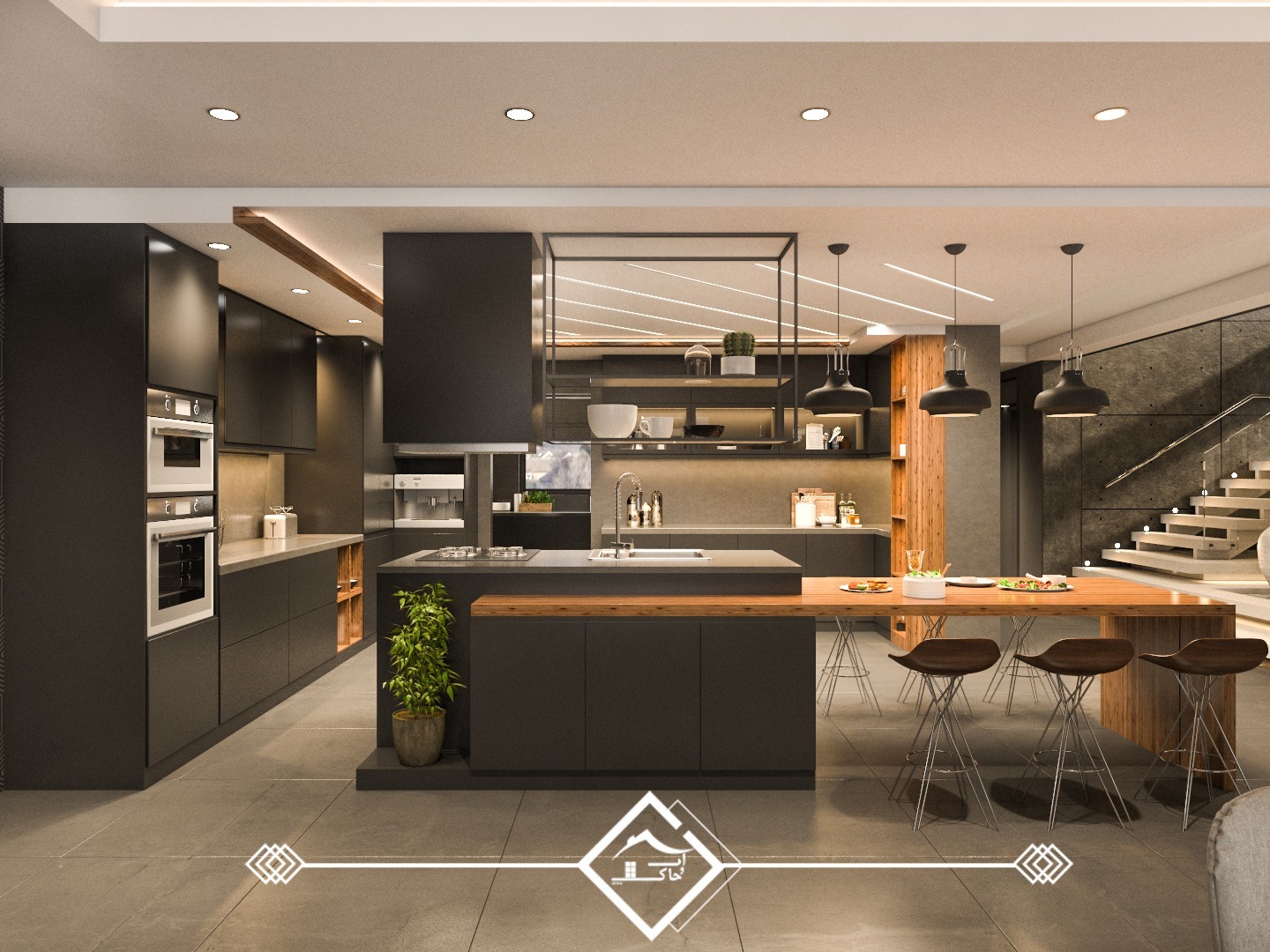 • آشپزخانه واحد ها دیزاین شده با کابینت رشنال آلمان و فول فرنیش میله Miele